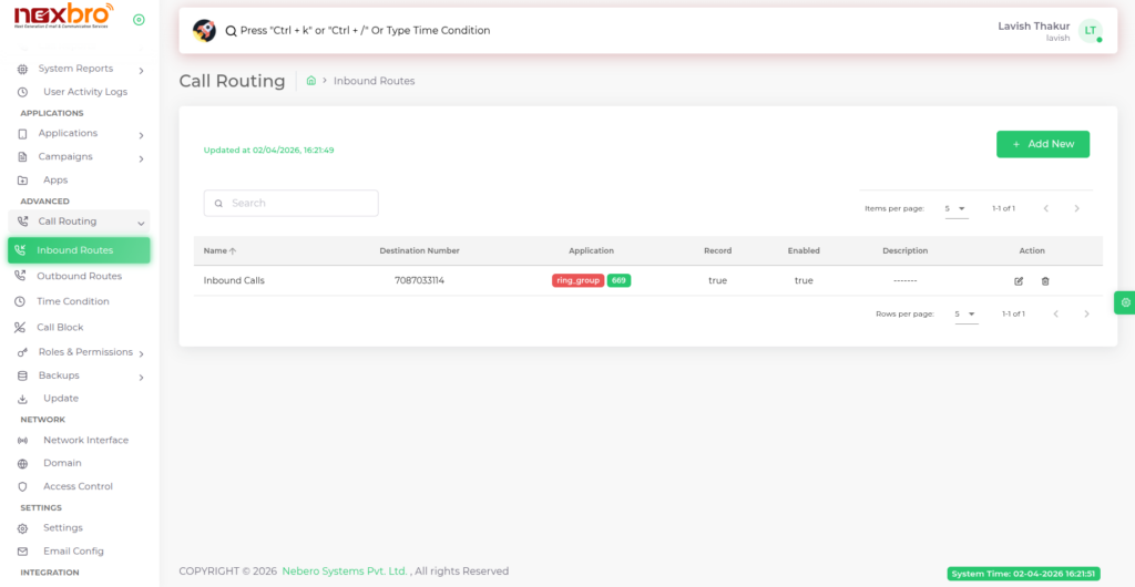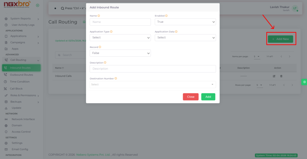 Add New (Inbound Route)
