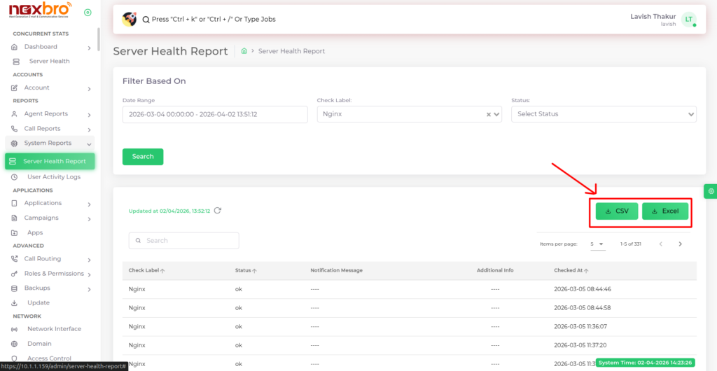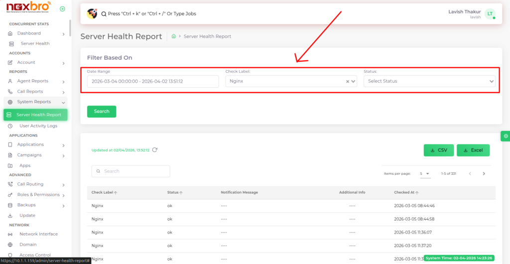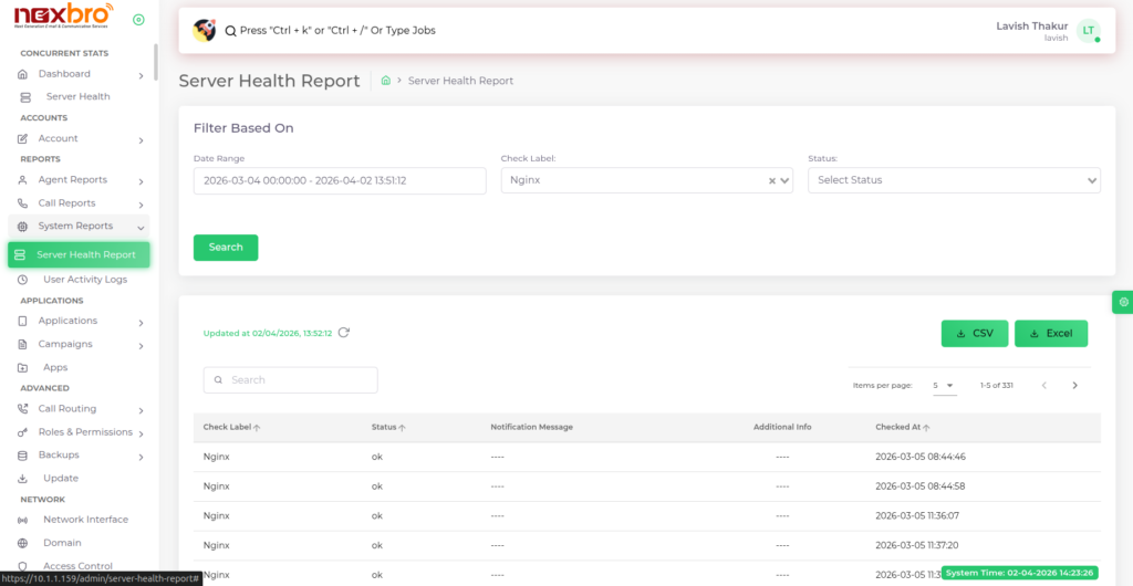 A Server Health Report is a monitoring dashboard that shows the status and performance of server components/services (like Nginx, database, CPU, etc.) over time. It helps admins quickly check whether the server is