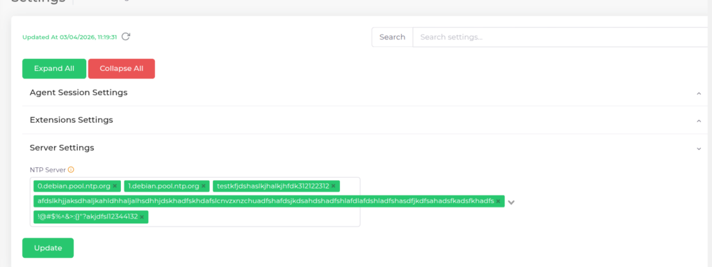 A list of all settings is displayed here, which can be edited and updated as per the