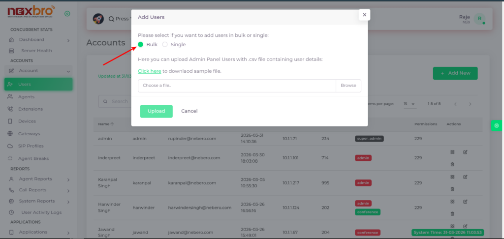 Bulk User (CSV Upload)